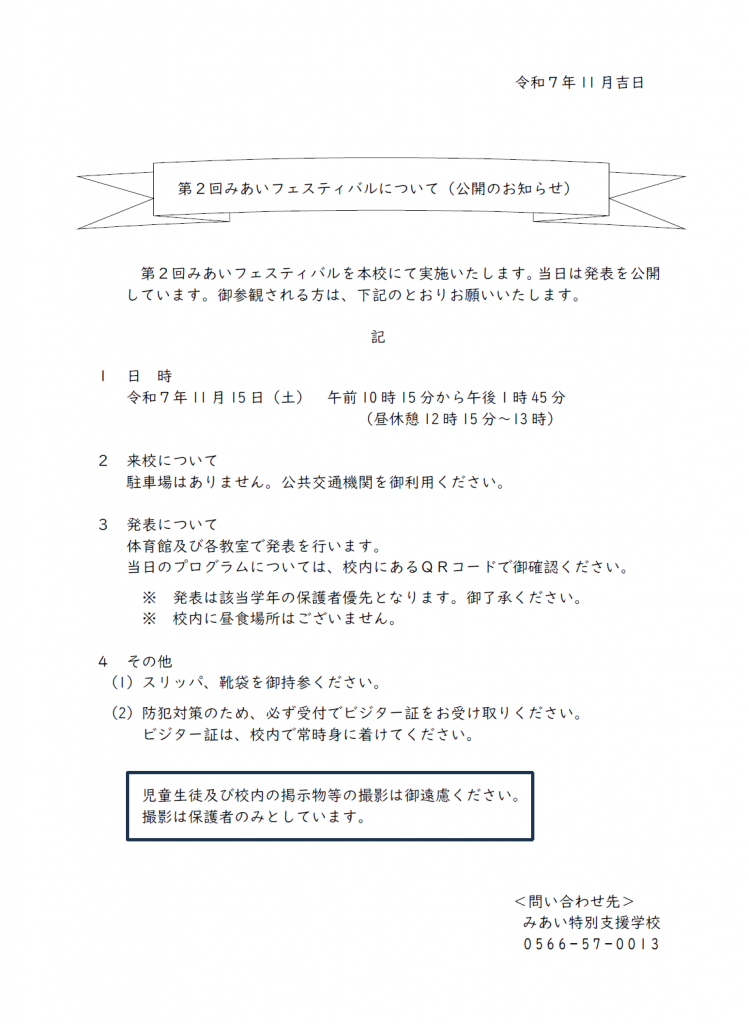 第2回みあいフェスティバルについて(公開のお知らせ)
