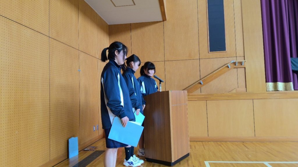お知らせ 生徒会活動 2025年12月12日 12月4日(木)に高等部の部集会が行われました。生徒会役員は、司会進行や当日行った愛ぴっくバスケットボール大会の壮行会での応援など、精一杯練習を重ねて臨みました。壮行会では、三・三・七拍子の力強いエールで選手たちを激励することができました。
