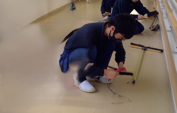 清掃緑化班では、校内の花壇の整備や清掃道具の手入れを行っています。作業を通して、役割分担をして協力することや丁寧に取り組むことを学んでいます。